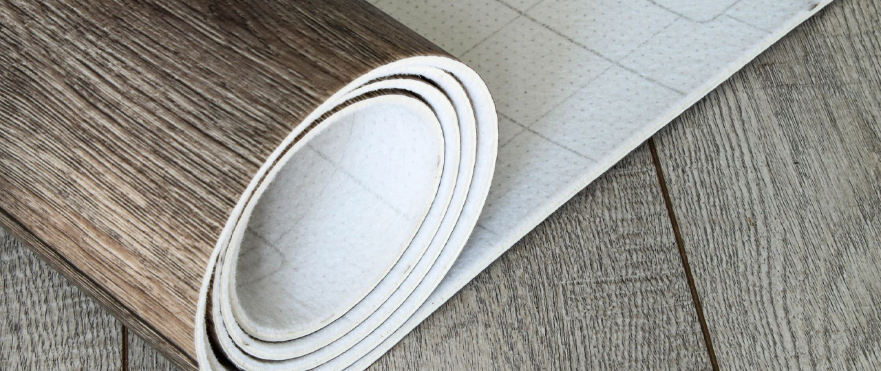 Sheet vinyl is a type of fibreglass-cushion-backed flooring that comes in large, flexible sheets. It’s primarily made of polyvinyl chloride (PVC), but it’s comprised of multiple layers: