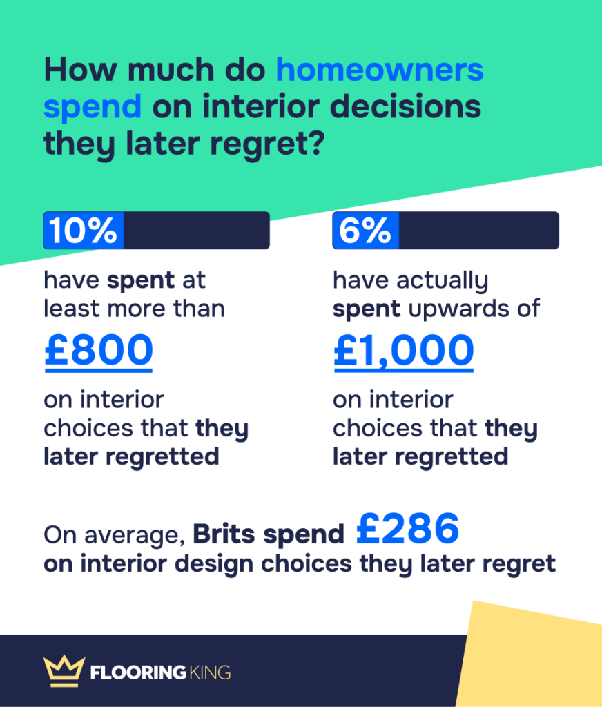 However, while by no means a large percentage on their own, at least 3% of homeowners are changing how their property looks every single month. Not only that, but the same percentage of people spend an average of £2,000+ on décor updates that they come to regret later on!