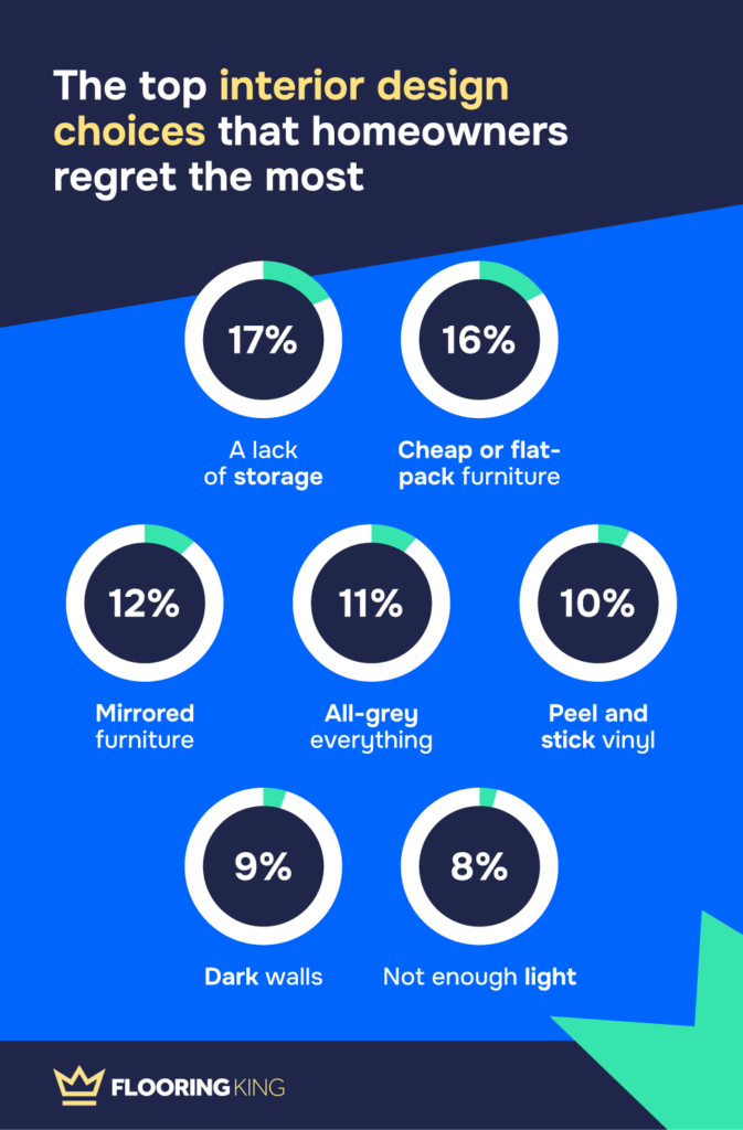 Perhaps providing insight into how much thought was given to making such changes before going ahead with them, 17% of people said that the resulting lack of storage they had available once their décor update was complete was a huge sticking point for them.
