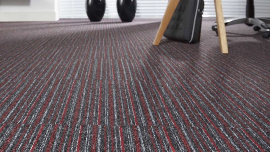 Most striped carpet tiles have directional arrows on the backing to guide installation. Planning your layout in advance and marking the subfloor helps ensure consistent alignment. Starting from the centre of the room and working outward typically gives the best results.