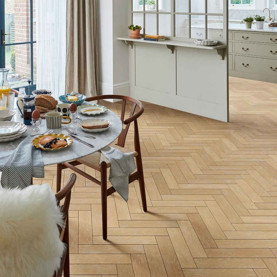 Chene Engineered 14/3 x 90mm Herringbone – Smoked White Oiled