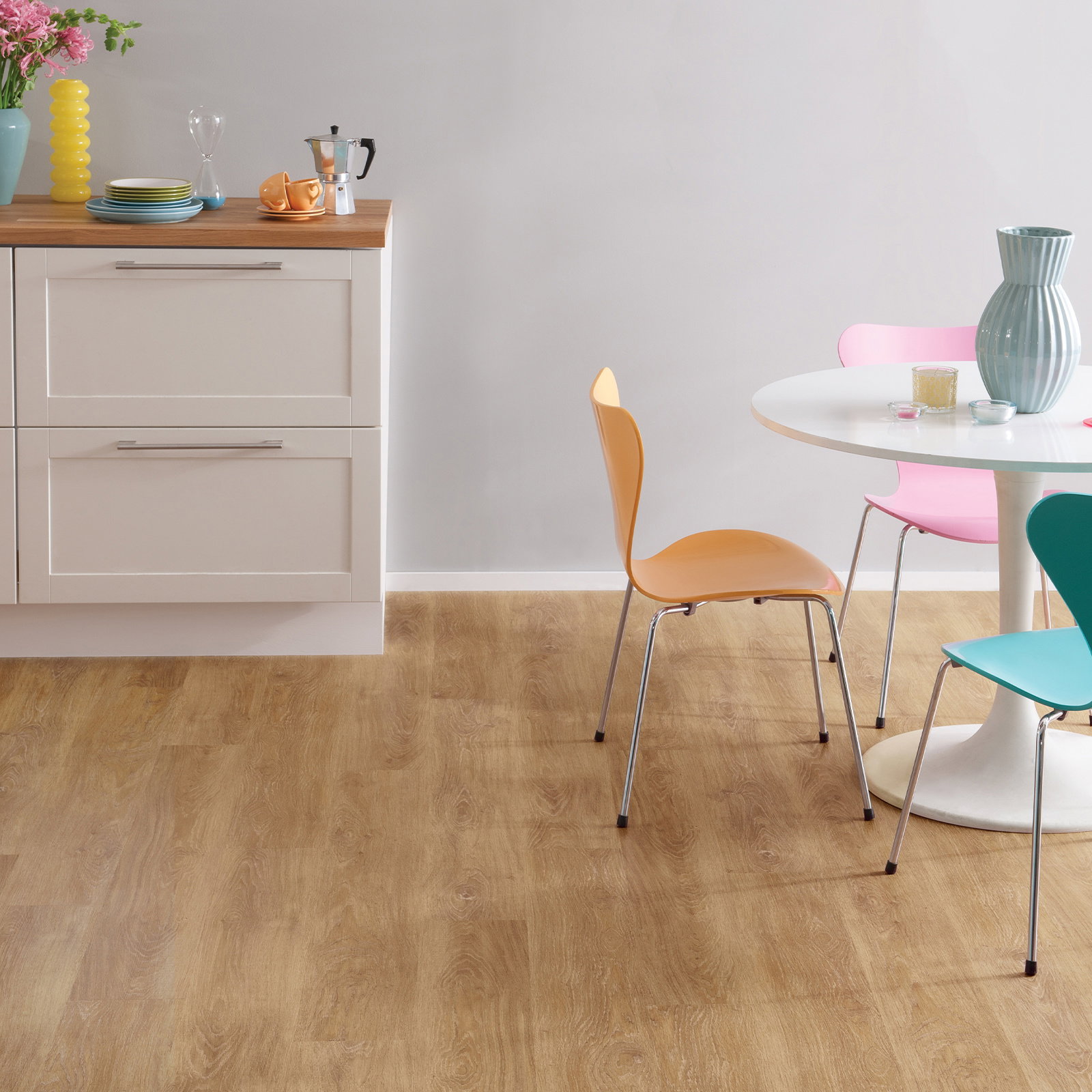 Palio by Karndean Core – Montieri RCP6504 offers a beautiful balance of contemporary style and everyday practicality. With its light brown tones and rich golden highlights, Montieri creates a neutral yet warm base that complements both modern and traditional interiors. Its intricate knot and grain details deliver all the visual benefits of traditional oak without the practical drawbacks of real timber, adding character to living spaces, hallways, bedrooms and open areas, bringing a natural sense of warmth to your home.