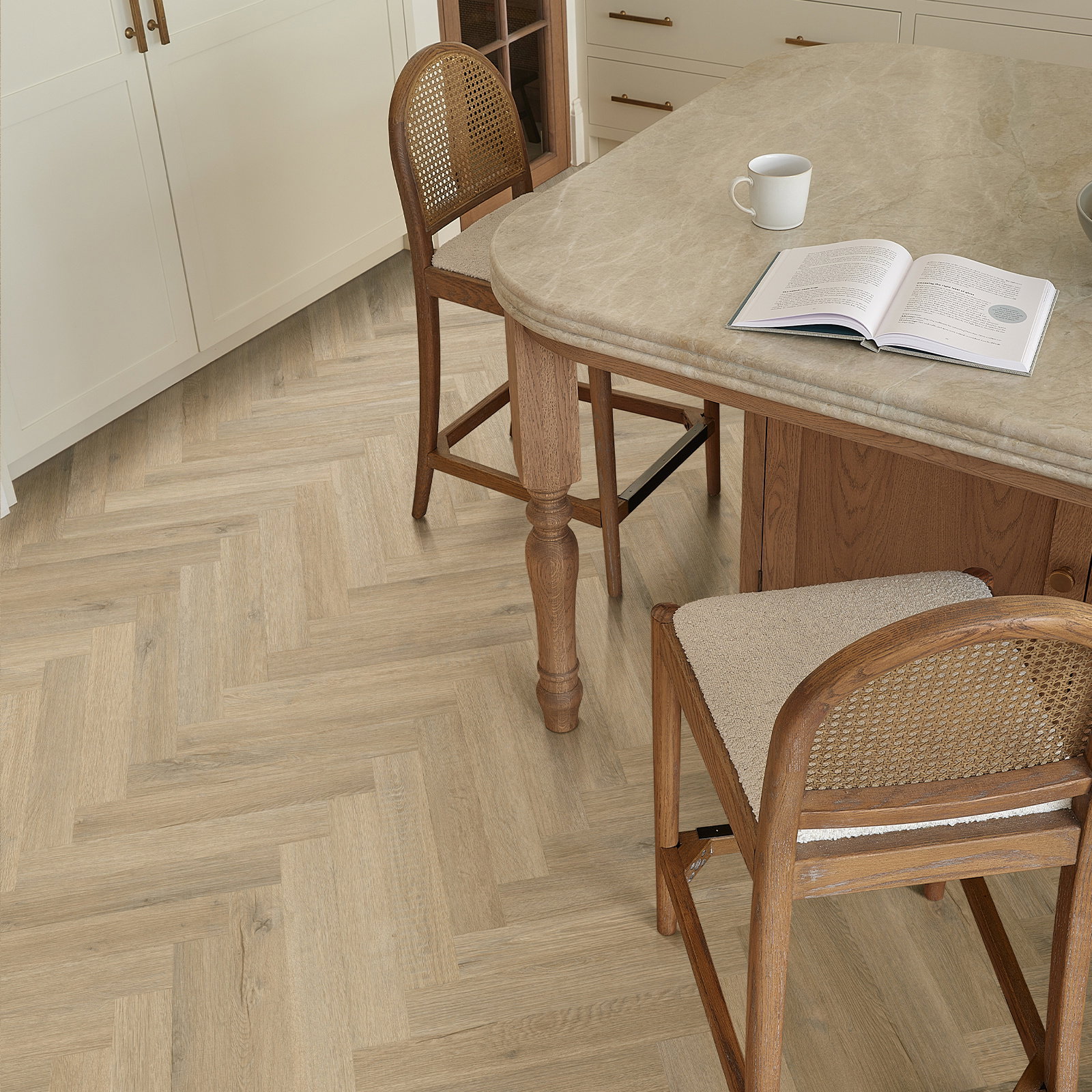 Gluedown installation at just 2mm thick, perfect for herringbone designs