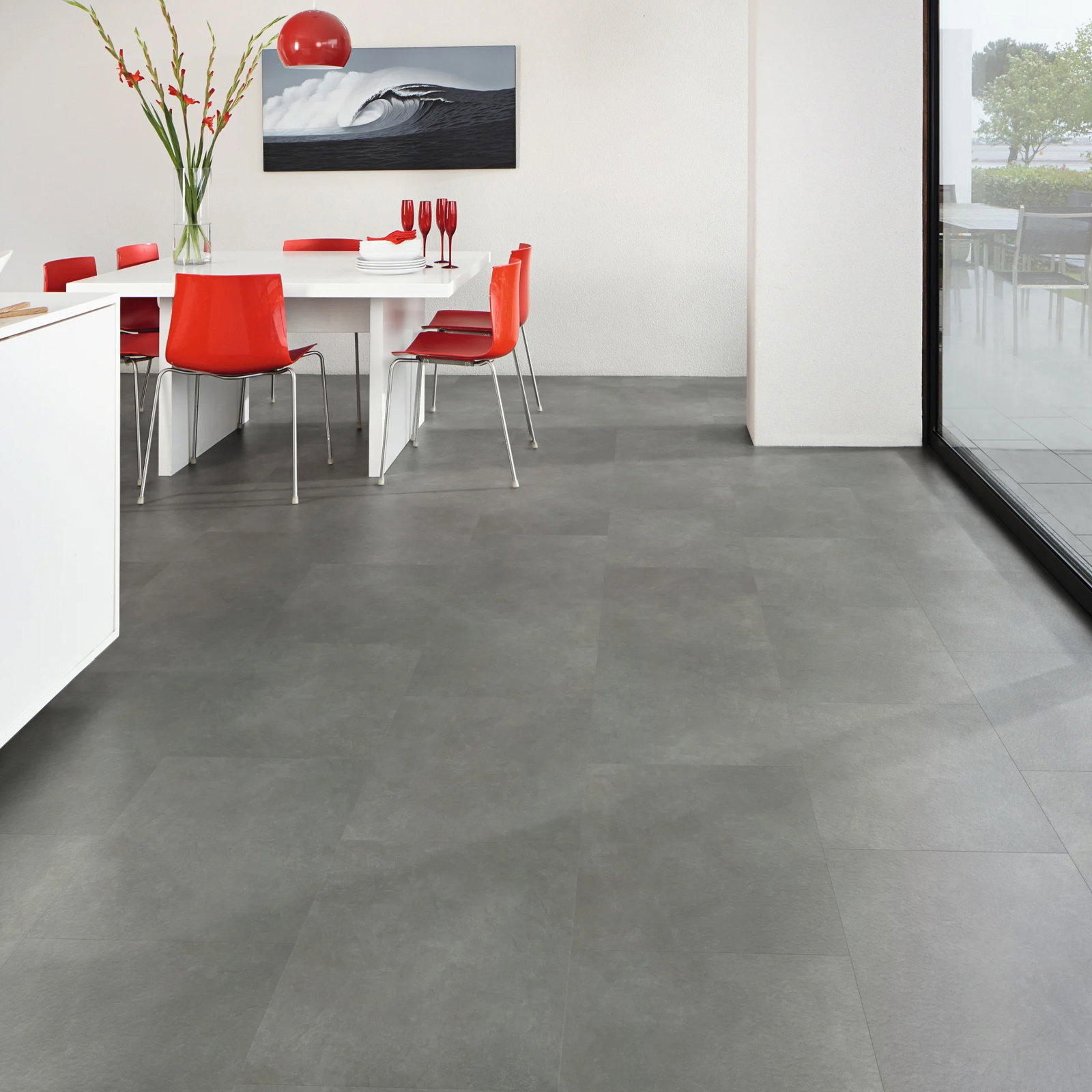 Palio by Karndean LooseLay – Nisida LLT210 is a LooseLay luxury vinyl tile (LVT) which blends modern design with outstanding practicality. Featuring slate-grey tones that give it an industrial edge perfect for contemporary styling, this large square tile format provides a neat underfoot base on which to build a contemporary interior look. The realistic stone textures create an authentic effect, bringing character to modern and traditional interiors.