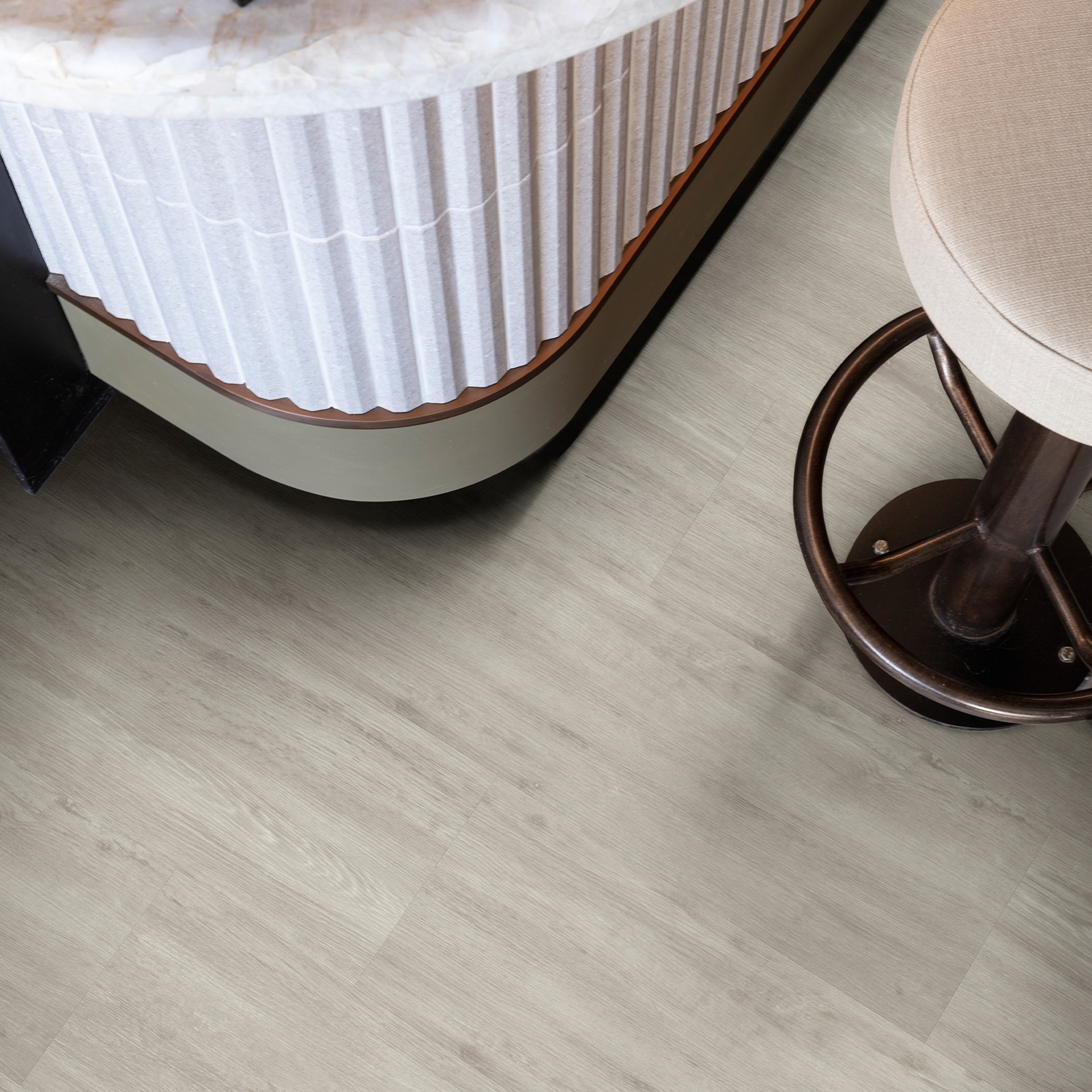 Palio by Karndean Rigid – Bridgeport PVP157-SCB is a premium rigid core luxury vinyl tile (LVT) that finds a perfect balance between contemporary design and everyday practicality. This stylish floor features cool light grey hues and subtle grain textures, creating a flexible and fresh contemporary feel that is suitable for a wide range of interior styles. Authentic knotting and grain texture give Bridgeport a natural wood appearance and add warmth and character to any space, offering an ideal choice for modern living.