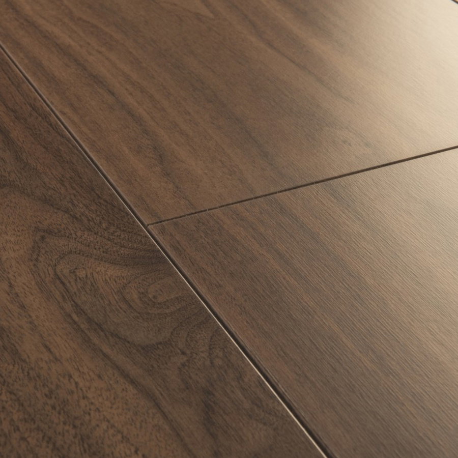 Introducing the Chic Walnut Quick-Step Laminate. This dark and stylish laminate flooring brings the rich allure of walnut to your space. Its strength is in its durability — it’s hard-wearing, water-resistant, and UV-resistant, making it perfect for nearly any room, whether it’s your bustling kitchen or your cosy bedroom.
