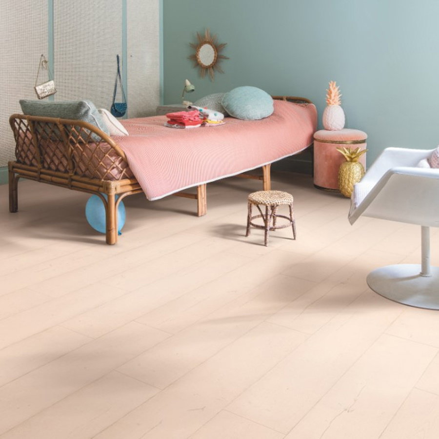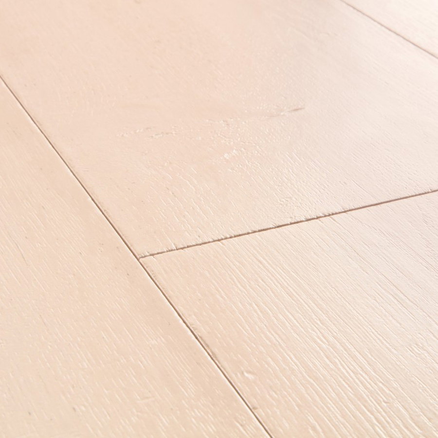 Breathe life into your living areas with the brilliant light tones of the Quick-Step Painted Oak Rose Laminate flooring. Easy to install with its ‘click’ method, this flooring is perfect for a range of rooms from your busy kitchen to your cosy bedroom. With its fabulous hard-wearing AC4 wear classification and water-resistant qualities, it stands up to the demands of everyday life.