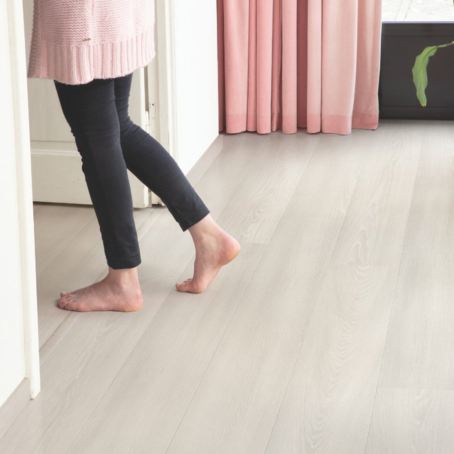 Its click-lock installation system makes the fitting process straightforward, while its sound insulation property ensures a peaceful atmosphere. When it comes to cleaning, a simple sweep or mop will do the trick! Complete with a built-in underlay, the ability to withstand underfloor heating, and a generous lifetime warranty, this Quick-Step white premium oak laminate gives your spaces a new lease of life, hitting the trifecta of style, durability, and comfort. Remember to use the Quick-Step Underlay for the ultimate flooring experience.