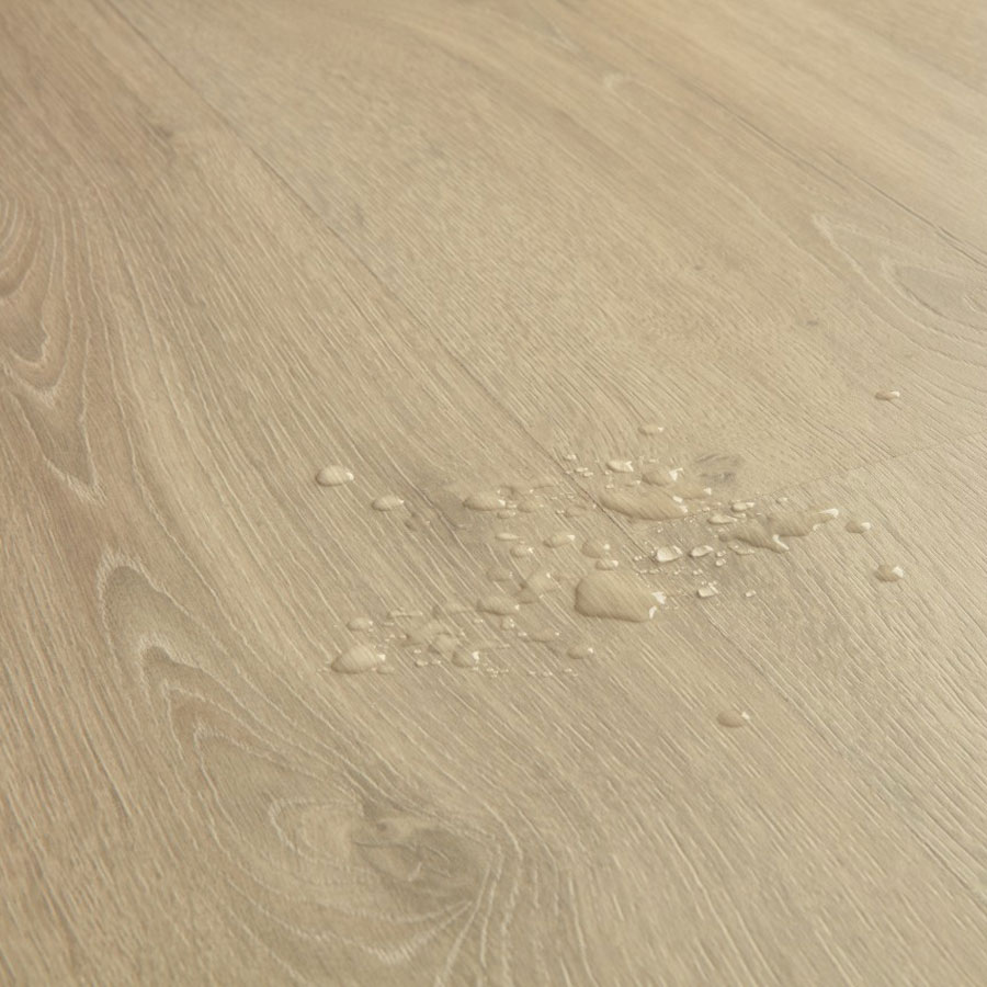 Inject natural charm into your home with the Quick-Step Classic – Sandy Greige Oak CLM5791. This Quick-Step laminate flooring replicates the beauty of oak with a wide plank design, exhibiting an attractive textured effect for an authentic and inviting feel. Engineered for durability, it is resistant to water and UV, so it’s great for every room, even kitchens and bathrooms.