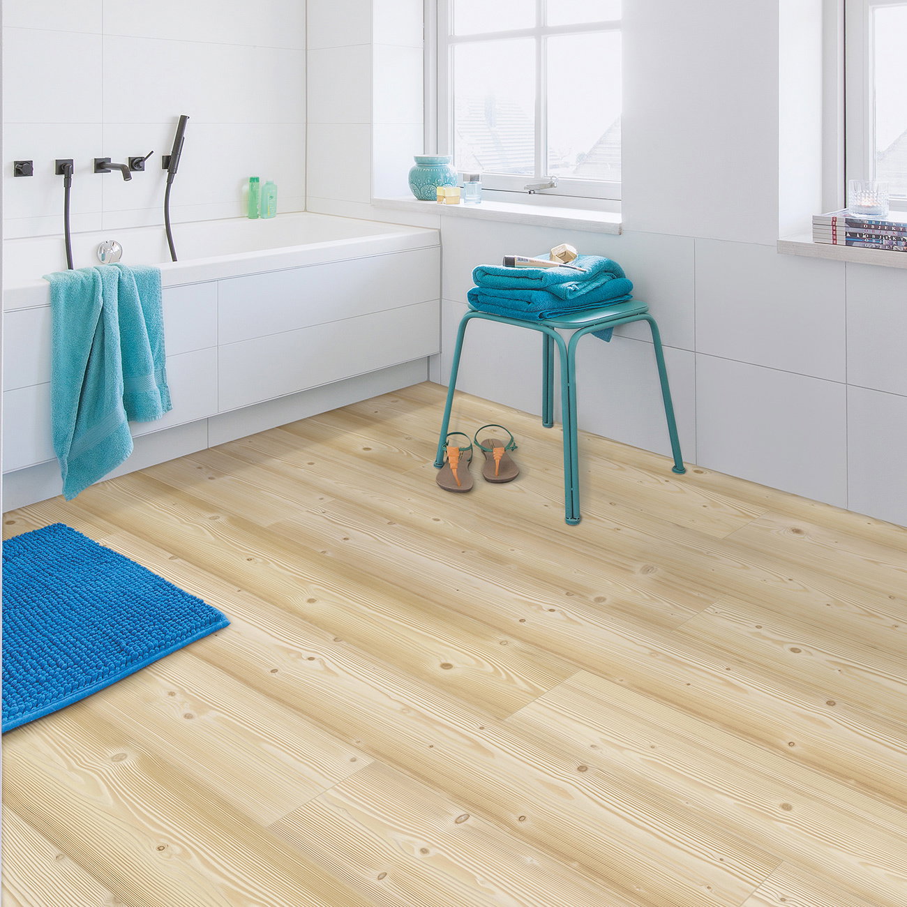 To qualify for your 10 year water warranty with this product you must seal the perimeter (including all doorways, expansions, radiator pipes) with Quick-Step Hydrokit. This floor is not suitable for wet rooms.