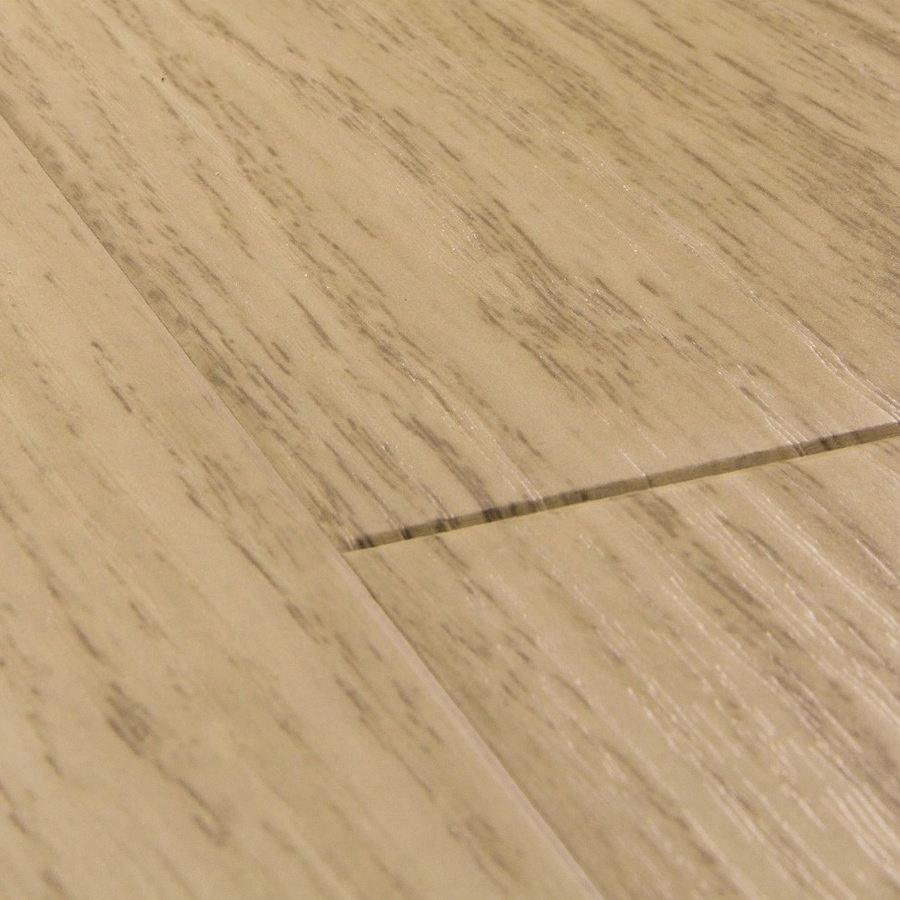 Invite style and durability to your home with the Quick-Step Impressive Ultra White Varnished Oak IMU3105. This laminate flooring displays the charming appeal of natural oak and is not just a treat for the eyes but also a high-performance choice. It’s made of resilient material that’s tough against wear and tear and it has the extra advantage of being water-resistant and UV-resistant too. So, it can shrug off the spills and sunbeams with equal ease!