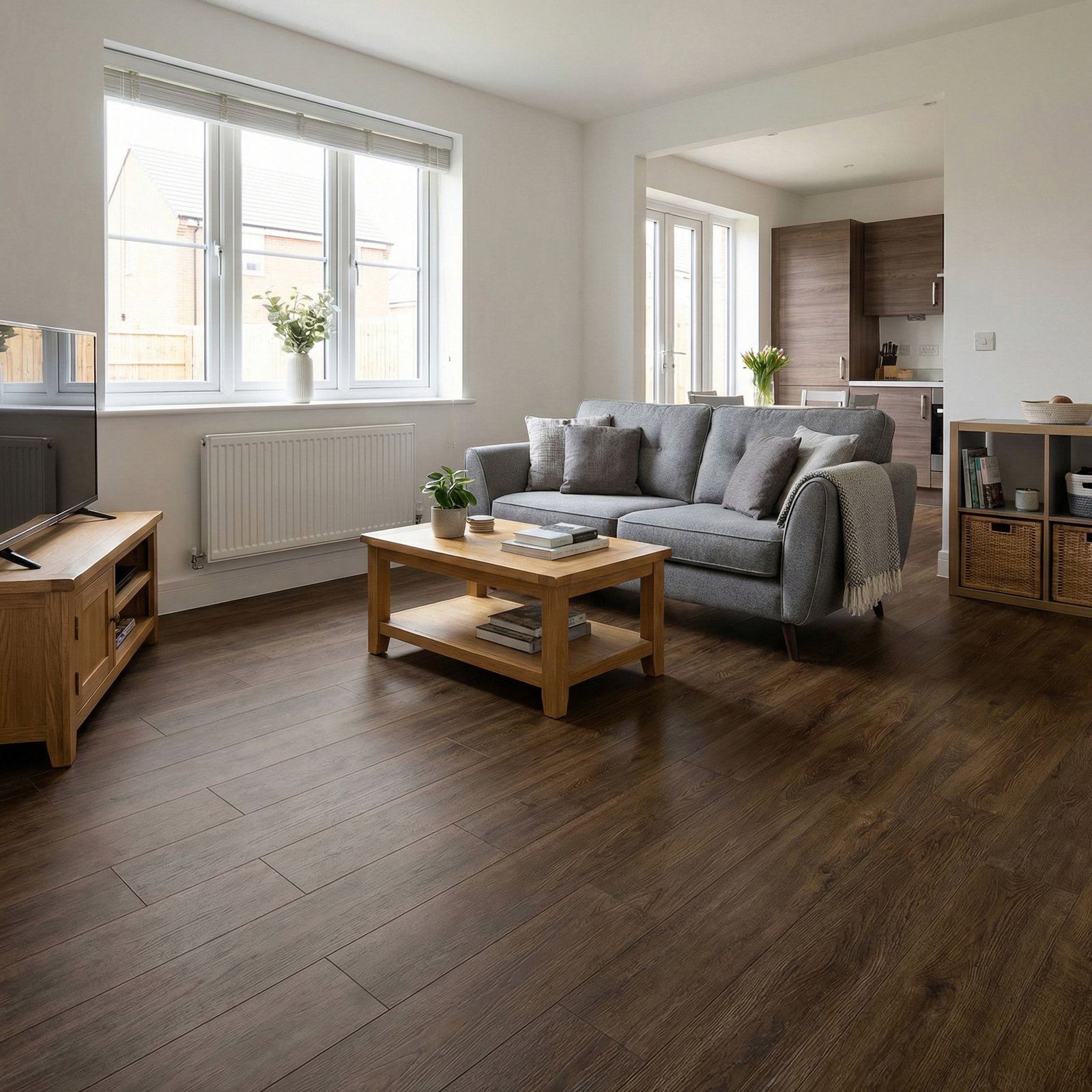 Embrace the allure of classic sophistication with the Royal Click Pro Chestnut Brown, a luxurious vinyl tile (LVT) flooring that beautifully marries traditional elegance with modern functionality. This exquisite dark brown oak SPC LVT, featuring a substantial 5.5mm thickness, is crafted to deliver both enduring strength and a sumptuous feel underfoot, making it a versatile choice for diverse environments, from elegant residential spaces to professional settings.