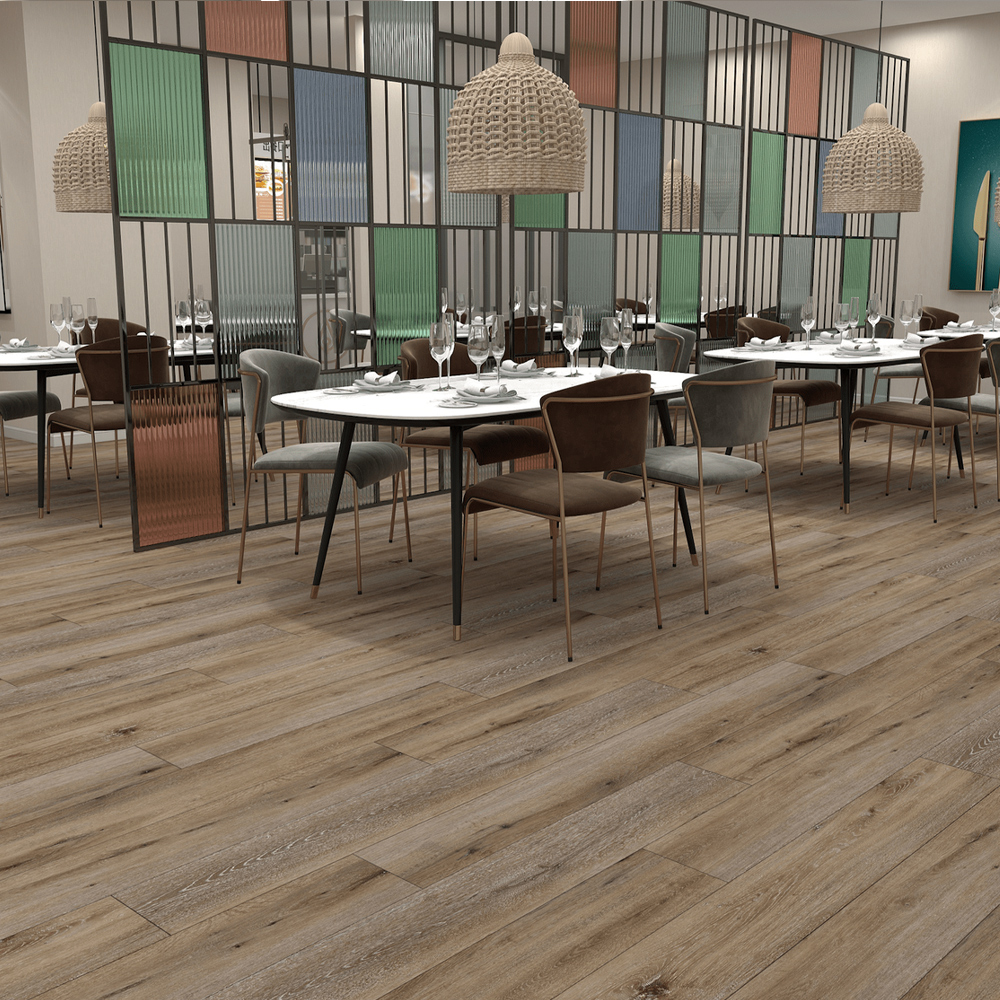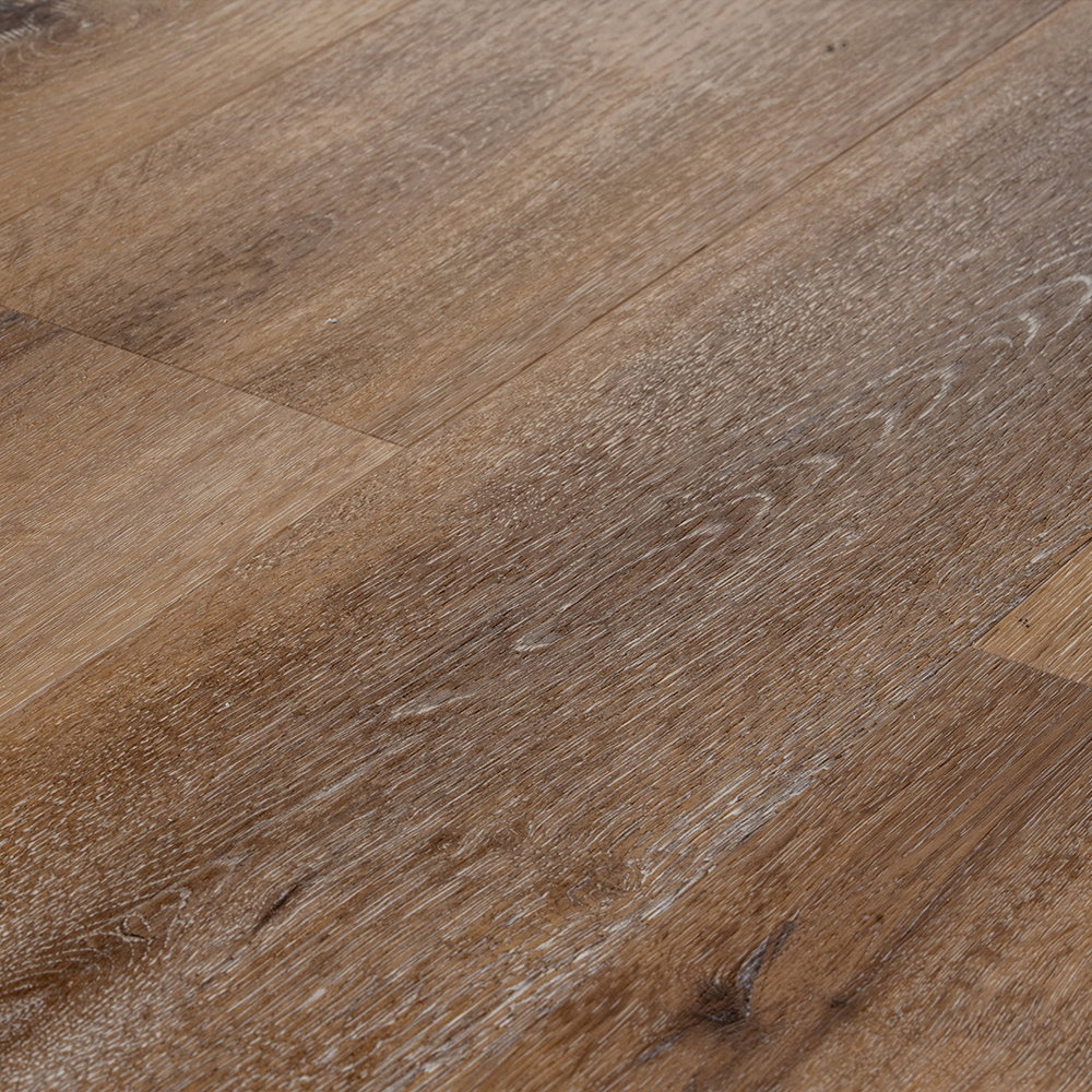 Seamlessly blending traditional aesthetics with modern functionality, the Royal Click Pro Distressed Oak collection is a premium brown oak SPC LVT flooring option.