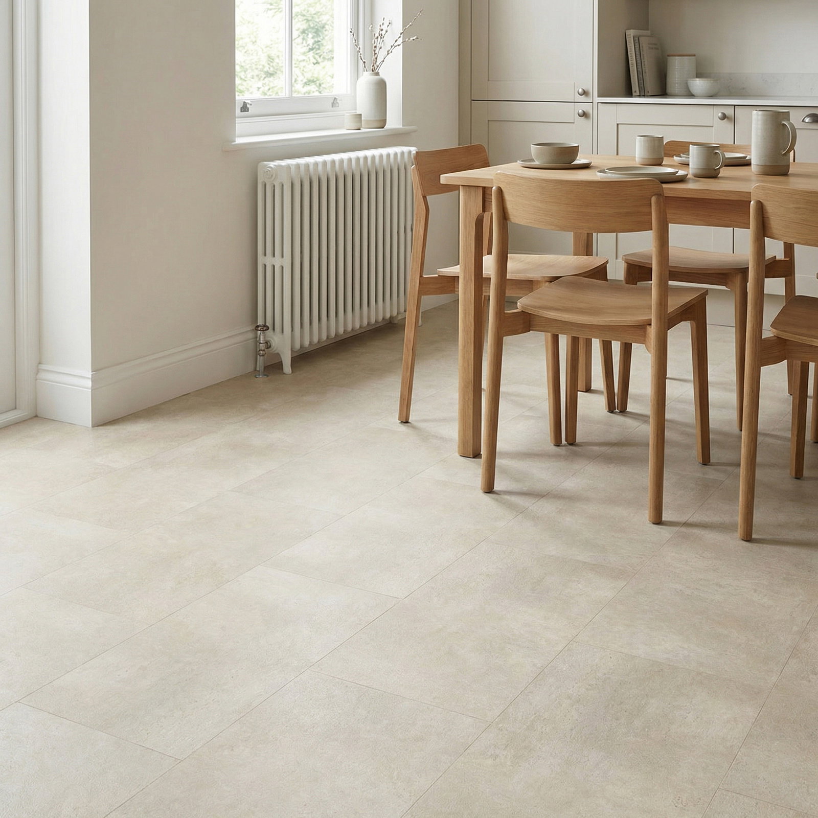 Unveil the essence of earthy elegance with the Royal Click Pro Tile Kalahari Stone, a sophisticated luxury vinyl tile (LVT) flooring that masterfully replicates the natural allure of stone. This LVT, featuring a beautiful beige coloured stone effect and a significant 5.5mm thickness, is engineered to offer both enduring strength and a pleasant feel underfoot, ideal for various environments from contemporary homes to professional business settings.