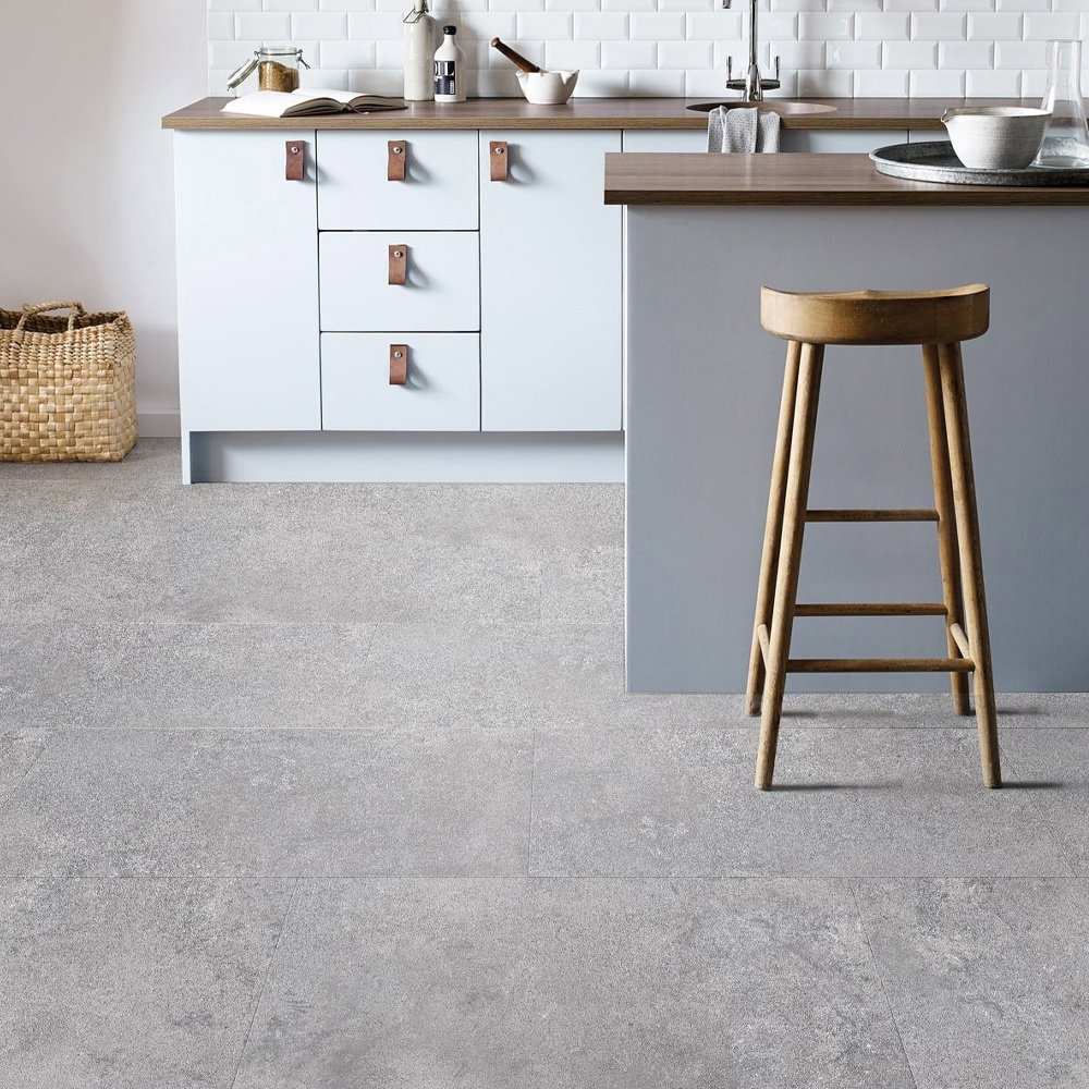 Embrace the contemporary urban aesthetic with the Royal Click Pro Tile Urban Concrete, a luxury vinyl tile (LVT) flooring that expertly encapsulates the sleek, modern appeal of concrete. This LVT, characterized by a concrete grey look and a substantial 5.5mm thickness, is engineered for exceptional durability and a refined feel underfoot, making it perfectly suited for a variety of settings, from minimalist homes to industrial-style commercial spaces.