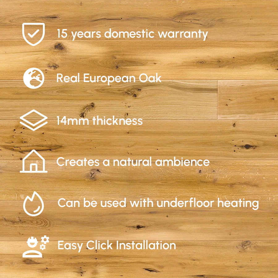 We are pleased to present you our Timba Floor 5G Engineered Oak Flooring Collection; this product is made in Europe from the very best locally sourced timbers and benefits from using the market-leading and proven Välinge 5G LOC system. This easy-to-fit mechanism is ideal when you are installing a floor over an underlay and with the added benefit of being suitable to use over underfloor heating installations.