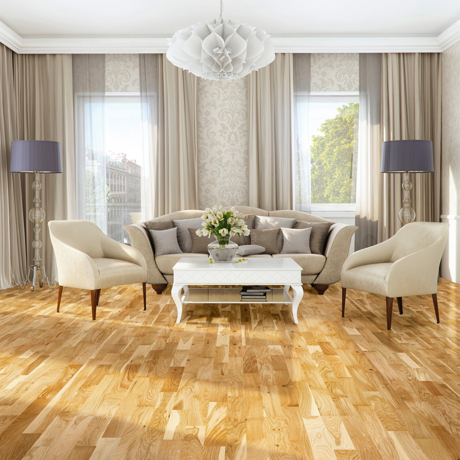 Each plank of the European 3-Strip Engineered Oak is crafted to showcase the unique beauty and texture of oak, with a three-strip design that adds depth and dimension to your flooring. The bevelled edging further accentuates each strip, creating a distinct and dynamic surface that is as engaging to look at as it is pleasant to walk on.